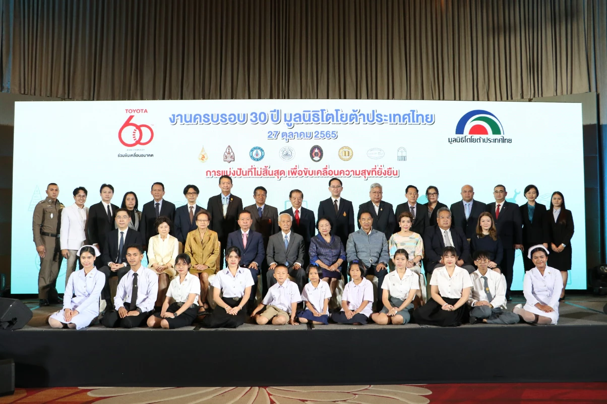 ในวาระครบรอบ 60 ปี โตโยต้า มอเตอร์ ประเทศไทย คุณนินนาท ไชยธีรภิญโญ ประธานคณะกรรมการ บริษัท โตโยต้า มอเตอร์ ประเทศไทย จำกัด ให้เกียรติในพิธีฉลองครบรอบ 30 ปี มูลนิธิโตโยต้าประเทศไทย และมอบเงินสมทบทุนจดทะเบียนให้แก่มูลนิธิโตโยต้าประเทศไทย เป็นจำนวน 500 ล้านบาท โดยมีคุณประมนต์ สุธีวงศ์ ประธานมูลนิธิโตโยต้าประเทศไทย เป็นผู้รับมอบ ทำให้เงินทุนจดทะเบียนรวมทั้งสิ้นเป็น 900 ล้านบาท เพื่อขยายการดำเนินกิจกรรมสนับสนุนในด้านทุนการศึกษา และร่วมพัฒนาคุณภาพชีวิตของเด็กและเยาวชนที่ด้อยโอกาส ทั้งในด้านความเป็นอยู่ สภาพแวดล้อม และสุขอนามัย ซึ่งนับเป็นรากฐานที่สำคัญในการพัฒนาสังคมไทยอย่างยั่งยืน ในวันพฤหัสบดีที่ 27 ตุลาคม 2565 ณ ห้องเบญจสิริ บอลรูม โรงแรมแบงค็อก แมริออท สุขุมวิท 57