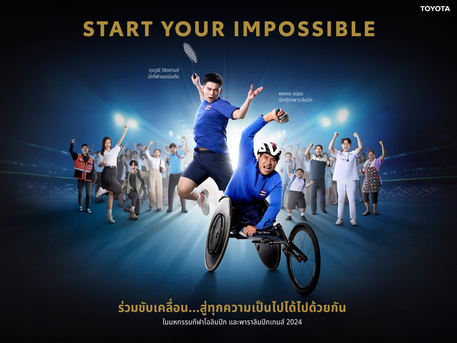 ในปีนี้ โตโยต้าได้สานต่อแนวคิด Start Your Impossible ผ่านการเน้นย้ำถึงจุดยืนที่ชัดเจนขึ้นกว่าเดิม ด้วยการเป็นผู้สนับสนุนหลักอย่างเป็นทางการของการแข่งขันกีฬาโอลิมปิกและพาราลิมปิก ณ กรุงปารีส 2024 บนพื้นฐานความเชื่อมั่นว่า การแข่งขันกีฬาเป็นหนึ่งในการแสดงออกถึงการผลักดันทางร่างกายและจิตใจเพื่อไปสู่เป้าหมายอย่างแท้จริง เสริมด้วยแนวคิด Community Creates Possibilities ที่คุณจะไปสู่เป้าหมายที่แท้จริงไม่ได้ หากขาดการสนับสนุนจากผู้คนรอบตัวที่ช่วยผลักดันไปสู่ความสำเร็จที่เป็นไปได้ สำหรับในประเทศไทย โตโยต้าได้ส่งต่อแนวคิดดังกล่าวผ่านเส้นทางสู่การประสบความสำเร็จของ 2 นักกีฬาทีมชาติไทย ได้แก่ วิว – กุลวุฒิ วิทิตศานต์ และ กร – พงศกร แปยอ ที่ได้รับคัดเลือกให้เป็นตัวแทนประเทศไทย เข้าร่วมเป็นหนึ่งใน Global Team Toyota Athlete หรือ GTTA ซึ่งเป็นผลมาจากการทุ่มเทแรงกายและแรงใจในการก้าวข้ามขีดจำกัดของตัวเอง พร้อมทั้งเริ่มต้นทำในสิ่งที่คิดว่าเป็นไปไม่ได้… ให้เป็นไปได้