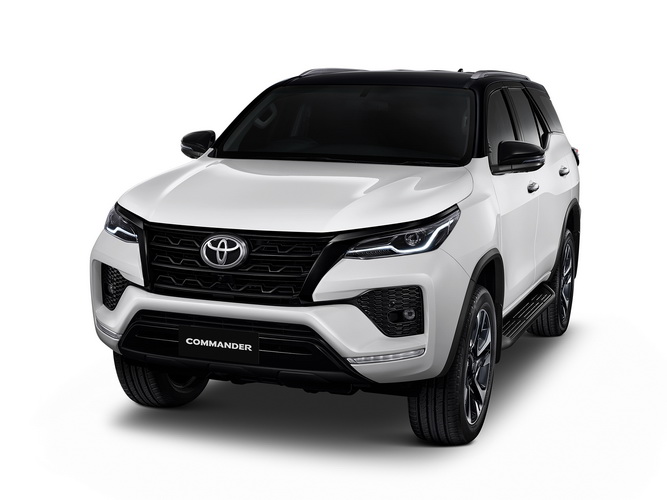 โตโยต้า ได้แนะนำรถยนต์อเนกประสงค์ระดับหรู FORTUNER COMMANDER ใหม่ ดีไซน์ภายนอกสะท้อนความเป็นผู้นำของรถเอนกประสงค์ระดับหรูที่โดดเด่นด้วย ชุดตกแต่งกันชนหน้า-หลังและกระจังหน้าสีดำเงา บันไดข้างสีดำเงา คิ้วตกแต่งฝาท้ายสีดำเงาพร้อมด้วยสัญลักษณ์ FORTUNER และหลังคาสีดำแบบทูโทน โดดเด่น สะกดทุกสายตา พร้อมล้ออัลลอยขนาด 20 นิ้ว