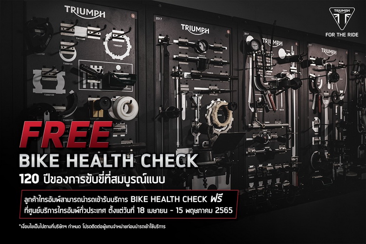 พร้อมกันนี้เพื่อร่วมเฉลิมฉลองครบรอบ 120 ปีแห่งประวัติศาสตร์ ไทรอัมพ์พร้อมมอบข้อเสนอมากมาย อาทิ สิทธิพิเศษสำหรับลูกค้าไทรอัมพ์ สามารถนำรถจักรยานยนต์ไทรอัมพ์เข้ารับบริการ Bike Health Check ได้ฟรีที่ศูนย์บริการไทรอัมพ์ทั่วประเทศ ตั้งแต่วันที่ 18 เมษายน 2565 จนถึงวันที่ 15 พฤษภาคม 2565 รวมถึงการมอบส่วนลดสำหรับอุปกรณ์เสริมถึง 30% ตลอดจนหากซื้อเสื้อผ้าและอุปกรณ์เสริมครบ 800 บาท มีสิทธิ์รับส่วนลดสูงสุดถึง 25% ในบิลถัดไป ตั้งแต่วันนี้ – 31 พฤษภาคม 2565 อีกด้วย นายชินศักดิ์ กล่าวทิ้งท้าย