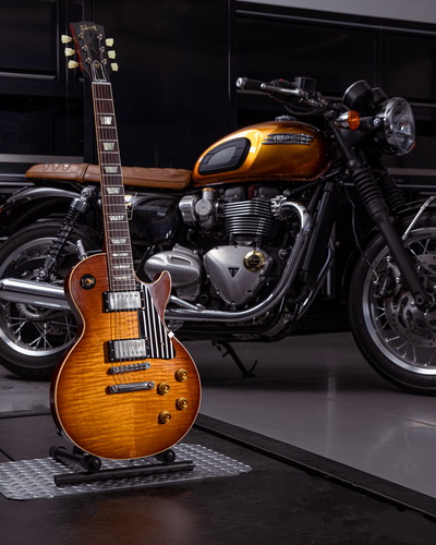 หลังจากกระแสตอบรับอย่างล้นหลามของการร่วมมือกันระหว่าง ไทรอัมพ์ มอเตอรไซเคิลส์ (Triumph Motorcycles) และ กิ๊บสัน (Gibson) ที่ร่วมกันสร้างสรรค์กีตาร์และรถจักรยานยนต์รุ่นคัสตอม ‘1959 Legends’ ที่มีเพียงชิ้นเดียวในโลก ทำให้ ไทรอัมพ์ และ กิ๊บสัน ได้กลับมาร่วมมือกันอีกครั้งในการสร้างสรรค์รางวัลสุดพิเศษเพื่อมอบให้กับผู้ที่ร่วมระดมทุนในกิจกรรม “เดอะ ดิสธิงกวิช เจนเทิลแมน ไรด์” (The Distinguished Gentleman’s Ride) เพิ่มเติมอีก 3 รางวัลที่มาพร้อมลายเซ็นของนักดนตรีชื่อดัง อีกทั้งยังมีเคสกีตาร์ “Saints of Speed” ซึ่งได้รับการทำสีแบบคัสตอม โดยได้รับแรงบันดาลใจมาจากนักขี่ไทรอัมพ์ในตำนาน โดยเคสกีตาร์แบบคัสตอมนี้จะวาดและลงสีด้วยมือโดย เจมส์ วิลลิส (James Willis) ศิลปินกีตาร์ชื่อดัง