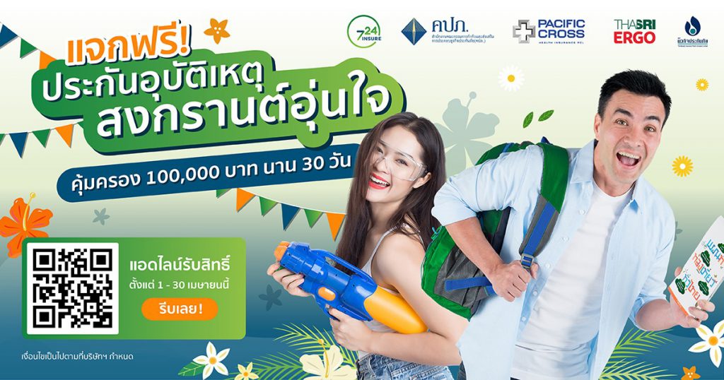 724 ประกันออนไลน์จับมือกับ 3 พันธมิตรบริษัทประกันภัยชั้นนำ ‘แจกประกันอุบัติเหตุ สงกรานต์อุ่นใจ’ จัดเต็มความคุ้มครอง 100,000 บาท นาน 30 วัน จำนวน 100,000 สิทธิ์ เพื่อมอบความห่วงใยในช่วงเทศกาลสงกรานต์ไม่ว่าเดินทางใกล้หรือไกลก็อุ่นใจได้มากกว่ารับสิทธิ์ได้ตั้งแต่วันที่ 1 – 30 เม.ย. 2564 นี้เท่านั้น