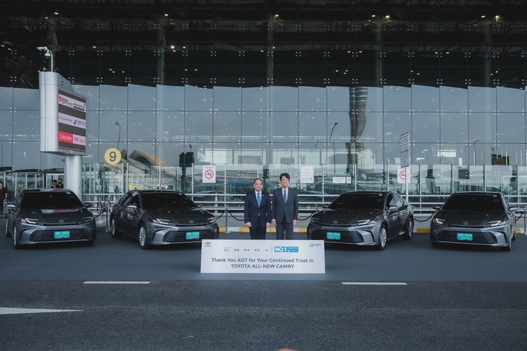 บริษัท โตโยต้า มอเตอร์ ประเทศไทย จำกัด ขอขอบคุณ บริษัท ท่าอากาศยานไทย จำกัด (มหาชน) หรือ AOT ที่มอบความไว้วางใจ ในการเลือกใช้ โตโยต้าคัมรี อย่างต่อเนื่อง ตลอด 19 ปี นับตั้งแต่เปิดทำการ เมื่อเดือนกันยายน พ.ศ 2549 และในปีพ.ศ. 2568 นี้ ทาง AOT ยังคงเชื่อมั่น และมอบความไว้ใจให้กับโตโยต้า โดยเลือกใช้ ALL-NEW CAMRY HEV SMART สีเงิน Precious Metal ใหม่จำนวน 50 คัน เพื่อเข้าร่วมเป็นส่วนหนึ่งของรถลีมูซีนประจำสนามบิน หรือ AOT Limousine ในการให้บริการรับส่งผู้โดยสารที่ท่าอากาศยานสุวรรณภูมิ อันเป็นการตอกย้ำความเชื่อมั่น และความไว้วางใจที่มีให้กับยนตรกรรมที่มาพร้อมเทคโนโลยีไฮบริดของโตโยต้า ที่สามารถมอบความสะดวกสบาย ทั้งยังปลอดภัยมั่นใจได้ ตลอดการใช้งาน ภายใต้แนวคิด “TOYOTA NO.1 TRUSTED HEV ไฮบริดที่ใช่มั่นใจทุกเจน”