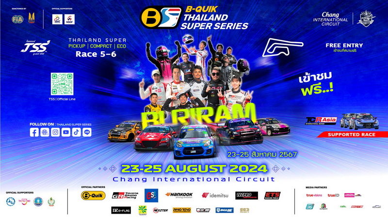 บริษัท เรซซิ่ง สปิริต จำกัด ผู้จัดการแข่งขันกีฬารถยนต์ทางเรียบระดับนานาชาติ รายการ B-Quik Thailand Super Series และ TSS The Super Series by B-Quik ภายใต้การรับรองโดย ราชยานยนต์สมาคมแห่งประเทศไทยในพระบรม ราชูปถัมภ์ สมาคมกีฬา (ร.ย.ส.ท.) เคลื่อนทัพรถแข่ง Non Supercar ประกอบไปด้วยรุ่น Thailand Super Eco , Compact , และ Pickup D1 / D2 จากรายการ B-Quik Thailand Super Series สู่ “ช้าง อินเตอร์เนชั่นแนล เซอร์กิต จังหวัด บุรีรัมย์” เตรียมปล่อยความดุเดือด ชิงชัยสนามที่ 5 และ 6 ประจำฤดูกาล 2024 พลาดไม่ได้ เกมส์ชิงชัยสนามที่ 5 และ 6 ประจำฤดูกาล 2024 วันที่ 23 – 25 สิงหาคม 2567 ที่ “ช้าง อินเตอร์เนชั่นแนล เซอร์กิต จังหวัด บุรีรัมย์” โดยสาวกมอเตอร์สปอร์ต สามารถชมฟรีติดขอบสนาม หรือ รับชมถ่ายทอดสดได้ทางผ่านระบบ Live Streaming ได้ที่ช่องทางต่างๆ ดังนี้ www.facebook.com/ThailandSuperSeries , YouTube : Thailand Super Series และ www.thailandsuperseries.net พร้อมทั้งรับชมการถ่ายทอดสดผ่านช่องทางออนไลน์ Facebook และ YouTube : PPTV Sports นอกจากนี้ยังสามารถรับชมการถ่ายทอดสดผ่านระบบโทรทัศน์ได้ที่ True Visions ช่อง TRUESPORT 2 และ TrueID Sports ช่อง 621 รวมถึงแอปพลิเคชัน และเว็บไซต์ https://ttid.co/KupK/dtq4pd7v ตั้งแต่วันเสาร์ที่ 24 สิงหาคม 2567 เวลา 09.45น. – 16.30น. และวันอาทิตย์ที่ 25 สิงหาคม 2567 เวลา 09.45น. – 16.00น.