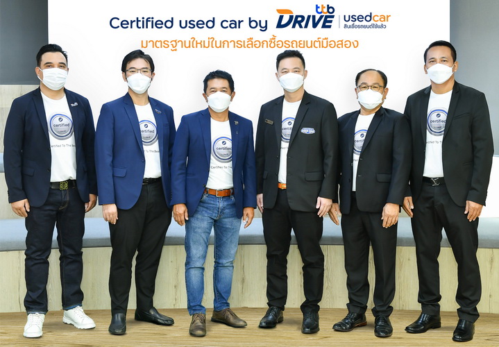 ทีทีบีไดรฟ์ (ttb DRIVE) โดย นายป้อมเพชร รสานนท์ ที่ปรึกษาอาวุโสด้านธุรกิจสินเชื่อรถยนต์ และนายชัชฤทธิ์ ตั้งเถกิงเกียรติ์ หัวหน้าเจ้าหน้าที่บริหาร ผลิตภัณฑ์ธุรกิจสินเชื่อรถยนต์ ทีเอ็มบีธนชาต หรือ ทีทีบี (ttb) พร้อมด้วย สมาคมผู้ประกอบการรถยนต์ใช้แล้ว โดยนายภิญโญ ธนวัชรภรณ์ นายกสมาคมฯ ร่วมเปิดตัว Certified used car by ttb DRIVE เครื่องหมายการันตีมาตรฐานรถยนต์มือสองคุณภาพ ที่ผ่านการตรวจสอบมาตรฐานโดยผู้เชี่ยวชาญจากบริษัทชั้นนำจากต่างประเทศ ช่วยเพิ่มความน่าเชื่อถือให้กับผู้ประกอบการเต็นท์รถ และสร้างความมั่นใจให้กับลูกค้าที่ต้องการซื้อรถยนต์มือสอง โดย ttb DRIVE ยังคงเดินหน้ามอบผลิตภัณฑ์และบริการที่ดีสำหรับลูกค้าและคู่ค้า เพื่อสนับสนุนให้ลูกค้ามีชีวิตทางการเงินที่ดีขึ้น ทั้งในวันนี้และอนาคต และทำให้ธุรกิจของคู่ค้าเติบโตไปพร้อมกัน สำหรับผู้ที่ต้องการรถยนต์มือสองที่มีคุณภาพ สามารถมองหาเครื่องหมาย Certified by ttb DRIVE ได้จากเต็นท์รถชั้นนำทั่วประเทศ