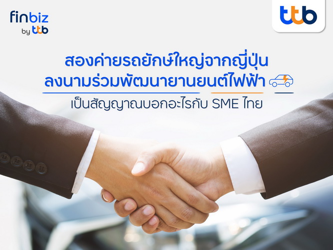 ช่วงเดือนมีนาคมที่ผ่านมา ค่ายรถยนต์ยักษ์ใหญ่สองรายจากญี่ปุ่น ได้ลงนามความร่วมมือเชิงกลยุทธ์ในด้านยานยนต์ที่ขับเคลื่อนด้วยพลังงานไฟฟ้าและการเคลื่อนที่อัจฉริยะ เพื่อก้าวสู่การแข่งขันในตลาดรถยนต์ไฟฟ้าอย่างเต็มตัว ความร่วมมือครั้งนี้ถือเป็นก้าวสำคัญในอุตสาหกรรมยานยนต์ ซึ่ง finbiz by ttb มองเห็นโอกาสและความท้าทายสำหรับ SME ไทย จากการแข่งขันของตลาดรถยนต์ไฟฟ้าในปัจจุบันเช่นกัน การจับมือของค่ายรถยนต์ยักษ์ใหญ่จากญี่ปุ่น สะท้อนถึงการแข่งขันที่รุนแรงในตลาดรถยนต์ไฟฟ้า ซึ่งจากสถิติของกรมการขนส่งทางบกในปี 2566 มีการจดทะเบียนใหม่ของรถพลังงานไฟฟ้าล้วน (BEV) ทั่วประเทศ ทั้งสิ้น 76,316 คัน คิดเป็น 76.19%จากประเภทรถทั้งหมด ซึ่งหากรวมประเภทยานยนต์ไฟฟ้าที่จดทะเบียนใหม่ทั้งหมดในปี 2566 มีจำนวน 100,219 คัน เพิ่มขึ้นจากปี 2565 ถึง 381.43% ทั้งนี้ ยานยนต์ไฟฟ้าส่วนใหญ่ผลิตในประเทศจีนเป็นสัดส่วนในตลาดถึง 60% จึงทำให้ค่ายรถยนต์ญี่ปุ่นยักษ์ใหญ่ต้องเร่งพัฒนานวัตกรรมยานยนต์ไฟฟ้า เพื่อให้ยังคงสามารถครองใจตลาดเอาไว้ได้