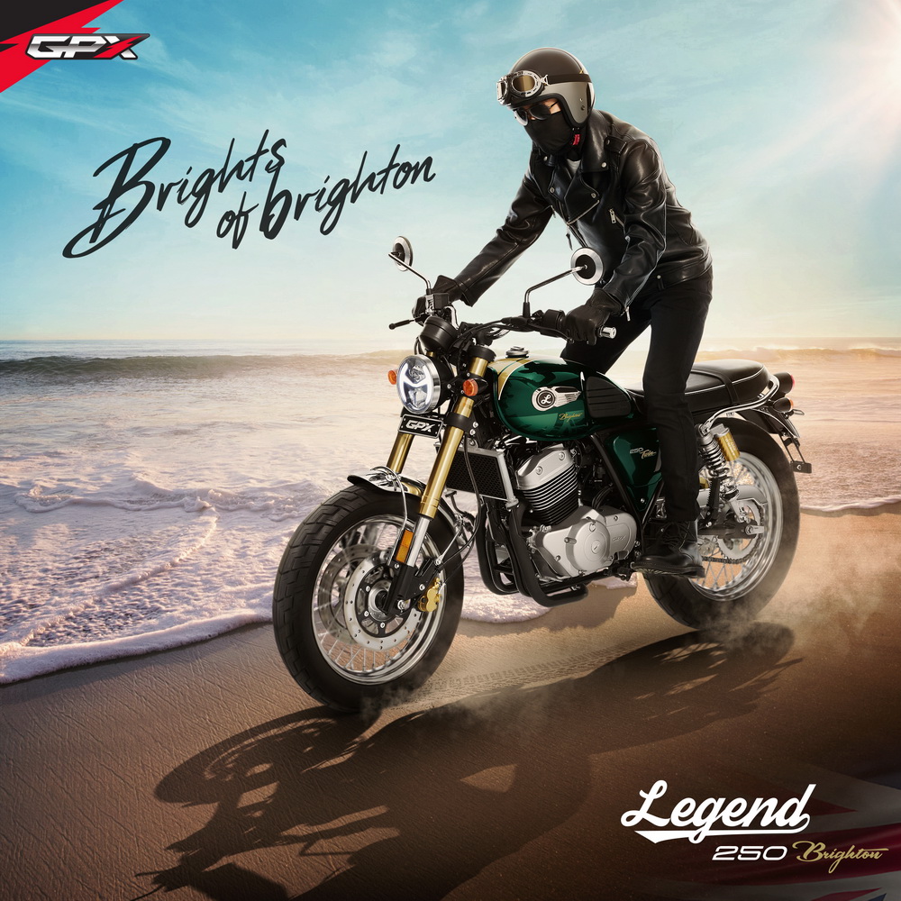ก้าวสู่อีกสเต็ปของตำนาน กับรถในรหัส ‘LEGEND’ ที่ใช้เป็นชื่อตระกูลรถคลาสสิกจากแบรนด์ GPX ซึ่งได้ถือกำเนิดรหัสนี้ครั้งแรกเมื่อปี 2015 และได้รับกระแสตอบรับที่ดีมาอย่างต่อเนื่อง จนสามารถขยายสายพันธุ์ตำนานกันมาอีกหลากหลายรุ่นจนถึงปัจจุบัน และไม่ใช่แค่กระแสตอบรับภายในประเทศไทยเท่านั้น แต่ถือเป็นรถที่ได้รับการตอบรับอย่างดี จากหลากหลายประเทศที่ GPX ได้ทำการส่งออกจำหน่ายไปแล้วกว่า 10 ประเทศด้วยกัน อาทิ ประเทศกัมพูชา ฮ่องกง มาเลเซีย และ ญี่ปุ่น เป็นต้น จึงทำให้การกลับมาในรอบนี้ ถือเป็นส่วนหนึ่งของตำนานของรถในตระกูล LEGEND และเป็นอีกครั้งที่ไม่ควรมองข้าม กับ โฉมใหม่ของ New LEGEND 250 Brighton
