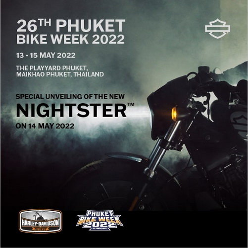Harley-Davidson® เข้าร่วมงาน Phuket Bike Week 2022 ครั้งที่ 26 ณ หาดเดอะเพลย์ยาร์ดภูเก็ต ตำบลไม้ขาว จังหวัดภูเก็ต ระหว่างวันที่ 13 – 15 พฤษภาคม 2565 ที่ผ่านมา ซึ่งงานดังกล่าวมีนักขับขี่รถมอเตอร์ไซค์เข้าร่วมงานมากกว่า 20,000 คน จาก 30 ประเทศทั่วโลก โดยภายในงาน มีการเปิดตัวสุดพิเศษของรถมอเตอร์ไซค์รุ่น Nightster™ ที่ถูกจับตามองมากที่สุด และการแสดงผาดโผนรถมอเตอร์ไซค์ Pan America™ Special โดย ราฟาเอล คอนซัลโว ที่สร้างความตื่นเต้นเร้าใจกับผู้ที่มาเยี่ยมชมบูธ Harley-Davidson®