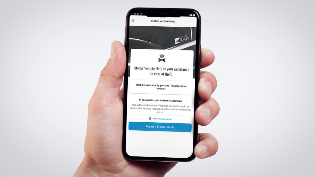 บริการ “Urban Guard – Stolen Vehicle Help” ที่อยู่บนแอพ Mercedes me นี้ ได้รับการออกแบบมาเพื่อช่วยให้ลูกค้าและหน่วยงานที่บังคับใช้กฎหมายสามารถติดตามและนำยานพาหนะที่ถูกขโมยไปกลับคืนมาได้ ความรวดเร็วเป็นสิ่งสำคัญมากเมื่อมีเหตุโจรกรรมเกิดขึ้น โดยบริการ “Stolen Vehicle Help” จะรวบรวมข้อมูลยานพาหนะและข้อมูลลูกค้าที่เกี่ยวข้องเพื่อช่วยให้หน่วยงานที่บังคับใช้กฎหมายสามารถระบุและนำยานพาหนะกลับคืนมาได้ โดยหน่วยงานที่บังคับใช้กฎหมายจะได้รับข้อมูลเหล่านี้ พร้อมกับข้อมูลตำแหน่งของยานพาหนะจากพันธมิตรผู้ให้บริการ ผู้ได้รับอนุญาตให้ติดต่อสื่อสารกับสถานีตำรวจทั่วโลกได้