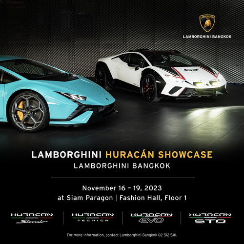 บริษัท เรนาสโซ มอเตอร์ จำกัด ตัวแทนจำหน่ายรถยนต์ลัมโบร์กินีอย่างเป็นทางการรายเดียวในประเทศไทย นำโดย อภิชาติ ลีนุตพงษ์ ประธานกรรมการ, ศักดิ์ นานา และ ม.ล.พลอยนภัส ลีนุตพงษ์ กรรมการจัดงาน LAMBORGHINI HURACÁN SHOWCASE 2023 พร้อมเผยโฉมผลงานระดับมาสเตอร์พีซจากตระกูล HURACÁN ที่ผสานโลกแห่งงานดีไซน์และระบบวิศวกรรมเข้าไว้ด้วยกันอย่างสมบูรณ์แบบ อาทิ HURACÁN Sterrato, HURACÁN Tecnica, HURACÁN EVO และ HURACÁN STO ระหว่างวันที่ 16-19 พฤศจิกายน 2566 ณ แฟชั่นฮอลล์ ชั้น1 สยามพารากอน