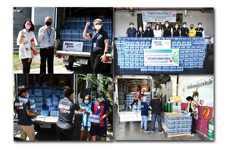ผู้บริหาร บริษัท สื่อสากล จำกัด ผู้จัดงาน “มหกรรมยานยนต์” หรือ “Thailand International Motor Expo” ส่งมอบน้ำดื่ม 6,000 ขวด ให้ “รพ.เอราวัณ2” “มูลนิธิกระจกเงา”และ “แคมป์คนงานพระราม9 กรุงเทพฯ” เพื่อนำไปช่วยผู้ประสบภัยจากโรคระบาด COVID-19 เมื่อวันที่ 9-10 สิงหาคม 2564 ที่ผ่านมา
