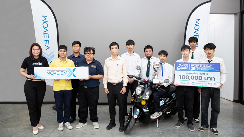MOVE EV X (มูฟ-อี-วี-เอกซ์) ธุรกิจขายและให้บริการสถานีเปลี่ยนแบตเตอรี่สำหรับรถมอเตอร์ไซค์ไฟฟ้า ร่วมสนับสนุนการใช้พลังงานสะอาดในทุกภาคส่วน โดยสนับสนุนแบตเตอรี่มาตรฐานความปลอดภัย UN R136 (แบบ Swap ที่ตู้เปลี่ยนแบตเตอรี่ได้) ให้กับคณะวิศวกรรมศาสตร์ มหาวิทยาลัยเทคโนโลยีราชมงคลกรุงเทพ ใช้ดัดแปลงรถมอเตอร์ไซค์เครื่องยนต์มาเป็นรถมอเตอร์ไซค์ไฟฟ้าที่ได้มาตรฐานความปลอดภัยและประหยัดพลังงาน เพื่อเข้าร่วมใน “การแข่งขันรถจักรยานยนต์ไฟฟ้าดัดแปลงเพื่อธุรกิจแห่งอนาคต ครั้งที่ 3” ซึ่งคว้ารางวัลชนะเลิศ รุ่นประชาชน และรางวัลรองชนะเลิศอันดับ 3 รุ่นมหาวิทยาลัย เมื่อวันที่ 26-27 เมษายน ที่ผ่านมา โดยมีคุณรัตชนก หวังเจริญ ประธานเจ้าหน้าที่ฝ่ายปฏิบัติการ บริษัท เดอะมูฟ ธันเดอร์ จำกัด (ที่ 1 จากซ้าย) ร่วมแสดงความยินดี ณ เอช เซม มอเตอร์ อยุธยา