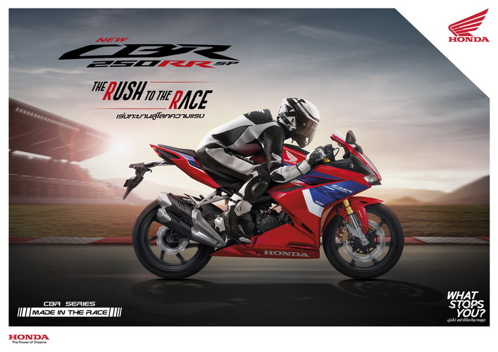 รถจักรยานยนต์ฮอนด้า ตอกย้ำความเป็นผู้นำตลาดรถสปอร์ตอีกครั้ง ด้วยการเปิดตัว New CBR250RR SP รถสปอร์ตตระกูล Racing Replica ที่มาพร้อมลวดลายใหม่แบบไตรคัลเลอร์อันเป็นเอกลักษณ์ของ Honda Racing ถ่ายทอดแรงบันดาลใจจากรถแข่งระดับโลกสู่ท้องถนน อัดแน่นด้วยเทคโนโลยีชั้นสูงเพื่อประสบการณ์ในการขับขี่แบบเรซซิ่งสปอร์ตขนานแท้