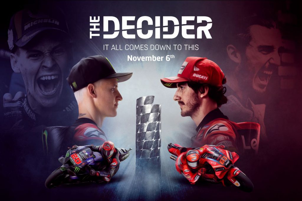 และมันก็เริ่มต้นขึ้น สุดสัปดาห์สุดท้ายของฤดูกาล ผู้ตัดสิน: นักบิดสองคน หนึ่งมงกุฎ และปีแห่งการขึ้น ๆ ลง ๆ ความตื่นเต้น การหก ชัยชนะและความพ่ายแพ้ที่น่าเหลือเชื่อ 23 แต้มแบ่งผู้ท้าชิง Francesco Bagnaia (ทีม Ducati Lenovo) จาก Fabio Quartararo (Monster Energy Yamaha MotoGP™) ผู้ท้าชิง (Monster Energy Yamaha MotoGP™) ที่ครองตำแหน่งอยู่ และสำหรับผู้ชมที่ดูนั่นทำให้สมการง่ายพอ: สิ่งเดียวที่ Quartararo ทำได้คือชนะ ถ้าเขาทำไม่ได้ Bagnaia ไม่จำเป็นต้องจบด้วยซ้ำ นั่นคือข้อได้เปรียบของเขา แต่นี่คือการแข่งมอเตอร์ไซค์ ยังไม่จบจนกว่าคลื่นธงตาหมากรุก