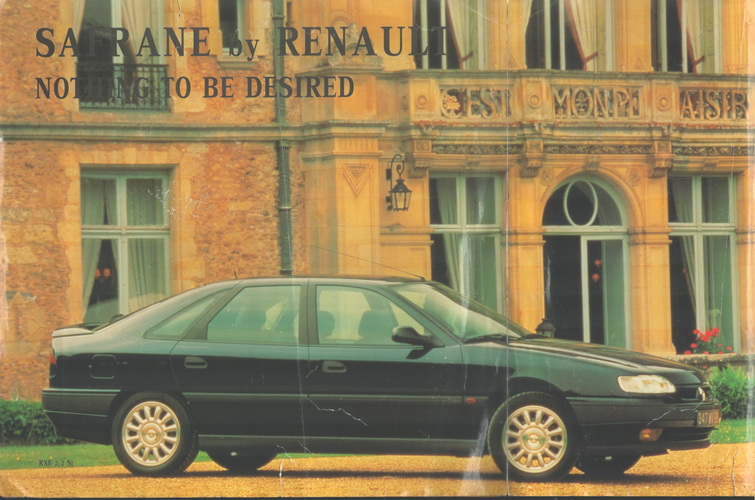 Safrane เปิดตัวในเดือนเมษายน 1992 เพื่อแทนที่ Renault 25 ในตลาดรถขนาดใหญ่ มีการออกแบบตามหลักอากาศพลศาสตร์ ตัวถังที่ดูสะอาดหมดจดนั้นค่อนข้างจะอนุรักษ์นิยมและเป็นแบบฉบับของการออกแบบรถยนต์ช่วงต้นทศวรรษ 1990