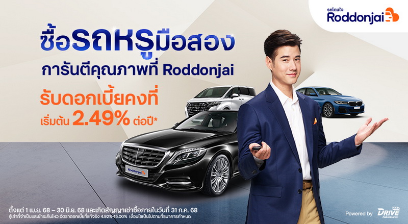 www.Roddonjai.com แพลตฟอร์มออนไลน์ซื้อ-ขายรถมือสองคัดคุณภาพทุกคัน รุกตลาดรถยนต์ Luxury มือสอง ด้วยแคมเปญแรง “ซื้อรถหรูมือสอง รับดอกเบี้ยคงที่ เริ่มต้น 2.49% ต่อปี” สำหรับผู้ซื้อรถยนต์ Luxury Car ที่ประกาศขายผ่านเว็บไซต์รถโดนใจ โดยมียอดจัดสินเชื่อมากกว่า 800,000 บาท พร้อมสมัครสินเชื่อเช่าซื้อรถยนต์ใช้แล้ว ทีทีบีไดรฟ์ ตั้งแต่วันนี้ ถึงวันที่ 30 มิถุนายน 2568 และเกิดสัญญาเช่าซื้อภายในวันที่ 31 กรกฎาคม 2568