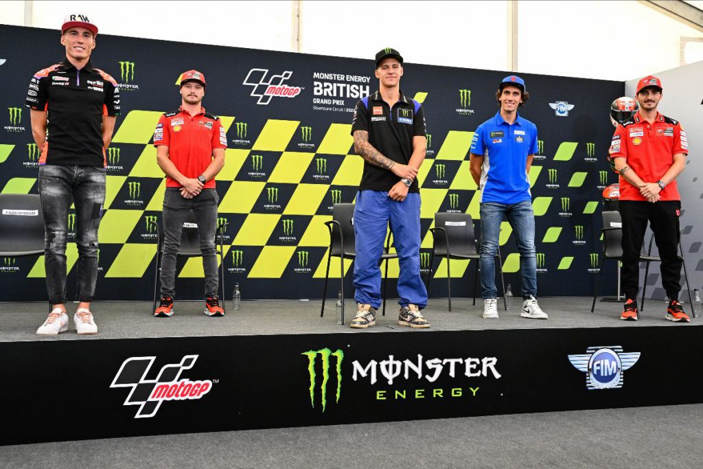 หายไปนาน แต่กลับมาแล้ว! ก่อนการแข่งขันในรายการ Monster Energy British Grand Prix มีเรื่องให้พูดถึงมากมาย โดยงานแถลงข่าวก่อนงานจะมีแชมป์ Fabio Quartararo (Monster Energy Yamaha MotoGP™) ผู้ท้าชิงที่ใกล้เคียงที่สุด Aleix Espargaro (Aprilia Racing) ผู้ชนะจาก Assen Francesco Bagnaia (ทีม Ducati Lenovo), เพื่อนร่วมทีม Jack Miller และอดีตผู้ชนะ Silverstone Alex Rins (Team Suzuki Ecstar)