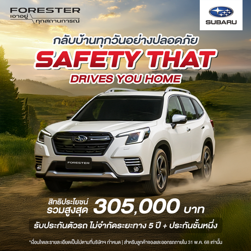 ออก SUBARU FORESTER EyeSight วันนี้รับสิทธิประโยชน์ สูงสุด 305,000 บาท รวมประกันภัยชั้น 1 และ รับประกันตัวรถไม่จำกัดระยะทาง 5 ปี